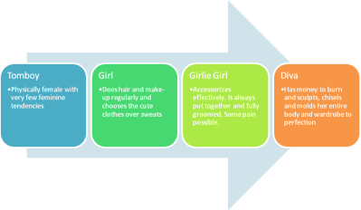 As a result of these revelations, I have come up with a spectrum of girliness, and my new goal is to just move further down the scale knowing that I am NEVER going to reach the pinnacle.